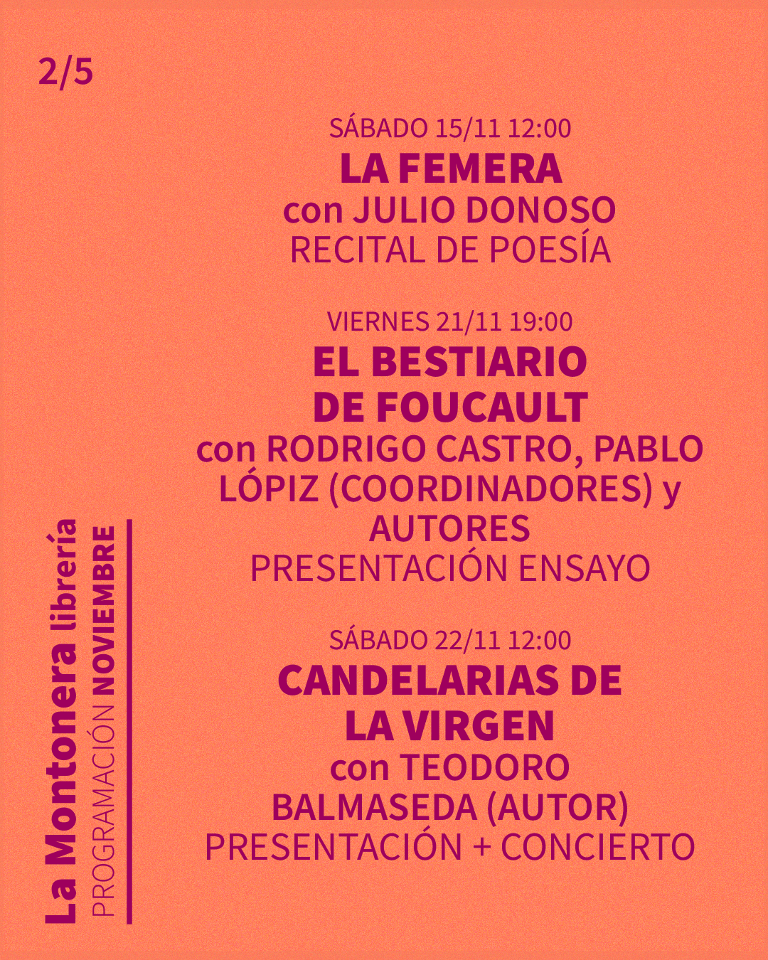 La Montonera nace del amor por los libros, de la curiosidad y la pasión por conocer. Es una librería pero quiere ser mucho más. Un espacio de pensamiento crítico en el corazón de la ciudad. Un lugar de encuentro y aprendizaje. Un lugar para ser habitado, donde perderse entre las estanterías y encontrarse con otras y otros. Una librería de autor que no olvida el papel social que tienen las librerías como agentes culturales en la ciudad. Un proyecto centrado en la atención personalizada y el cuidado de nuestra comunidad: que atiende sus necesidades (encargos, solicitudes) y escucha sus ideas (recomendaciones de libros, propuestas de actividades…). ¡Ven a conocernos en c/San Pablo 26, a 3 minutos del Mercado Central!